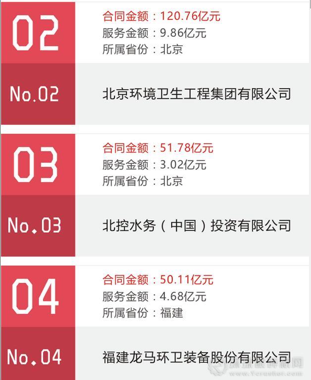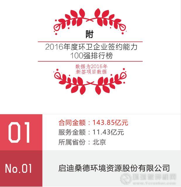 啟迪桑德、北京環(huán)衛(wèi)集團(tuán)、北控水務(wù)、龍馬環(huán)衛(wèi)、玉禾田、勁旅科技、中聯(lián)重科、家寶園林、潔亞清潔、康潔環(huán)衛(wèi)位列“2016年度環(huán)衛(wèi)企業(yè)簽約能力百強(qiáng)榜”前十。詳情如下: