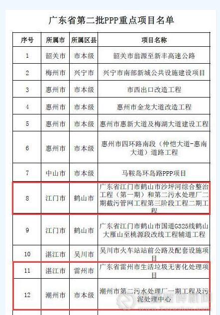 日前,廣東省第二批省級PPP重點(diǎn)項(xiàng)目名單已經(jīng)公布。這批PPP項(xiàng)目共13個(gè)。節(jié)能環(huán)保方面涉及污水處理、垃圾處理等環(huán)保項(xiàng)目。詳情如下: