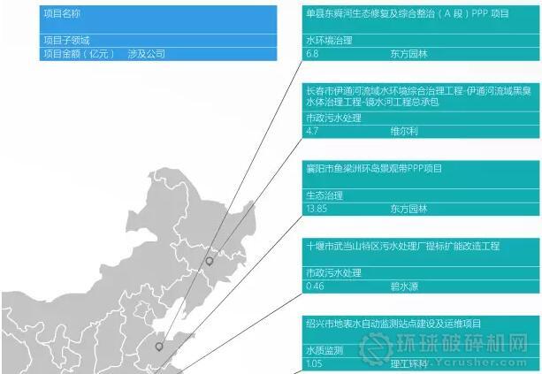 碧水源在1月拿下7大項(xiàng)目(包含預(yù)中標(biāo)),投資金額超17億元,碧水源通過自己的MBR技術(shù),繼續(xù)深耕水環(huán)境治理領(lǐng)域。東方園林作為中國(guó)水環(huán)境PPP模式的先河者,自2015年以來,其PPP訂單金額已超700億。今年1月份已完成3個(gè)PPP項(xiàng)目的簽約,涉及金額54.3億元。其中東方園林與中國(guó)一冶集團(tuán)有限公司等組成的聯(lián)合體簽下云南玉溪大河下游黑臭水體治理及海綿工程項(xiàng)目,作為本月成交金額最高的訂單,涉及金額超33億元。盛運(yùn)環(huán)保拿下兩個(gè)項(xiàng)目,訂單總金額達(dá)31億元。其中,盛運(yùn)環(huán)保簽約江西省彭澤縣礦山物料運(yùn)輸專用線建設(shè)項(xiàng)目將作為國(guó)內(nèi)首次長(zhǎng)距離運(yùn)輸環(huán)保型散裝物料的項(xiàng)目,作為公司開年第一個(gè)PPP項(xiàng)目,利于日后公司的PPP項(xiàng)目布局。