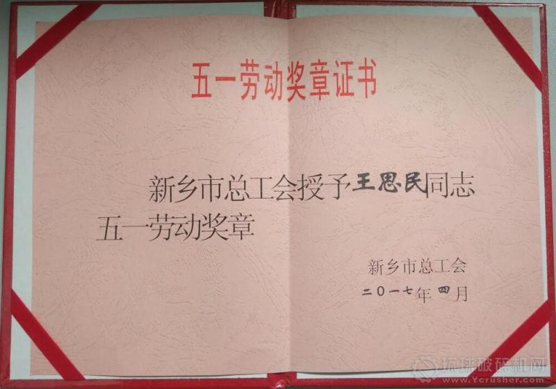 2017年4月26日上午,新鄉(xiāng)市政府召開 “新鄉(xiāng)市慶祝五一國際勞動節(jié)暨五一勞動獎表彰大會”, 河南威猛振動設(shè)備股份有限公司總經(jīng)理王思民榮獲“新鄉(xiāng)市五一勞動獎?wù)?rdquo;榮譽(yù)稱號。