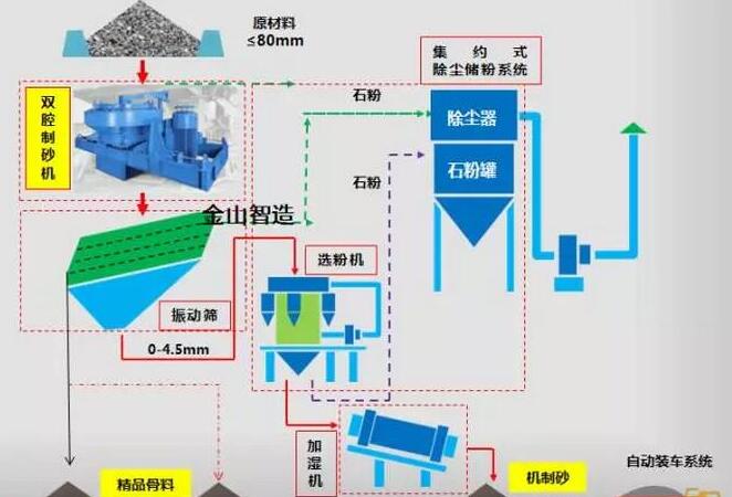 此次會議上鑫金山智能推出兩套機制砂系統(tǒng),一套是針對混凝土市場需求的“砂石同出”系統(tǒng),使用的是德國原裝的“雙腔”制砂機,該系統(tǒng)具有動力選粉、一機多用、出砂率高(成品達50%以上)等優(yōu)勢。另一套是針對干混砂漿市場需求的“精品機制砂”系統(tǒng),使用的是德國原裝的“研磨”制砂機,該系統(tǒng)具有工藝簡潔、耗能低(單電機配置、耗能降低40%以上)、出砂率高(成品達90%以上)等優(yōu)勢。這兩套系統(tǒng)的成功推出不僅是礦山企業(yè)的福音,降低成本,提高產(chǎn)量和質(zhì)量,從而直接增加企業(yè)利潤,同時其特有的干法生產(chǎn)工藝,可以做到真正的“零污染”,響應(yīng)國家“既要金山銀山,又要綠水青山”的政策號召。