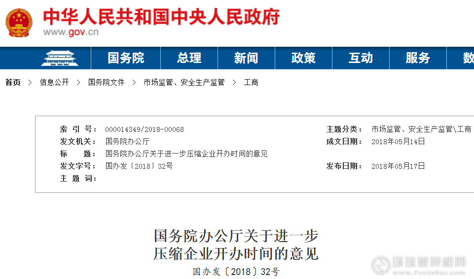 5月17日,國務院辦公廳發(fā)布《關于進一步壓縮企業(yè)開辦時間的意見》(國辦發(fā)〔2018〕32號),將進一步簡化企業(yè)從設立到具備一般性經營條件所必須辦理的環(huán)節(jié),壓縮辦理時間。2018年年底前,各直轄市、計劃單列市、副省級城市和省會城市要將企業(yè)開辦時間壓縮一半以上,由目前平均20天減至8.5天(指工作日,下同)以內,其他地方也要積極壓減企業(yè)開辦時間,2019年上半年在全國實現(xiàn)上述目標。