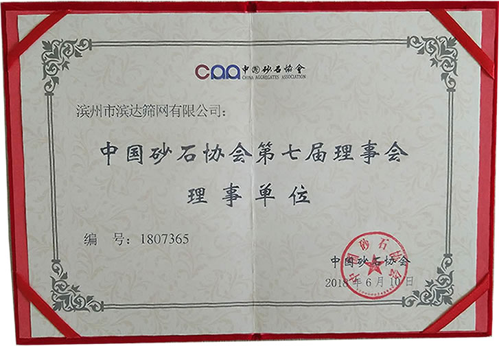 此次成為中國砂石協(xié)會(huì)理事單位,體現(xiàn)了公司的綜合實(shí)力,這是一種榮譽(yù),更是對(duì)濱達(dá)篩網(wǎng)公司在國內(nèi)砂石骨料領(lǐng)域發(fā)展的肯定。