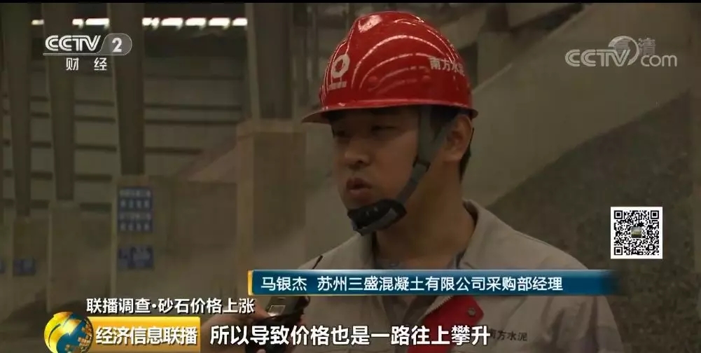 馬銀杰(蘇州三盛混凝土有限公司采購(gòu)部經(jīng)理):必須錢先到賬,再發(fā)貨。很多單位都是主動(dòng)加價(jià)要砂,因?yàn)楝F(xiàn)在砂確實(shí)緊張,所以導(dǎo)致價(jià)格也是一路往上攀升。