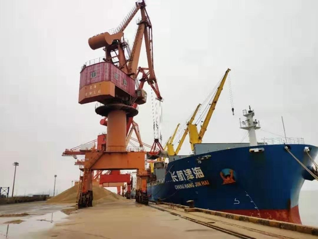 2月28日,在溫州港狀元岙碼頭,裝載著5.56萬噸馬來西亞進口黃沙的“長航津海”輪順利完成接卸作業(yè),這也是浙江省首次完成外貿(mào)黃沙接卸作業(yè)。