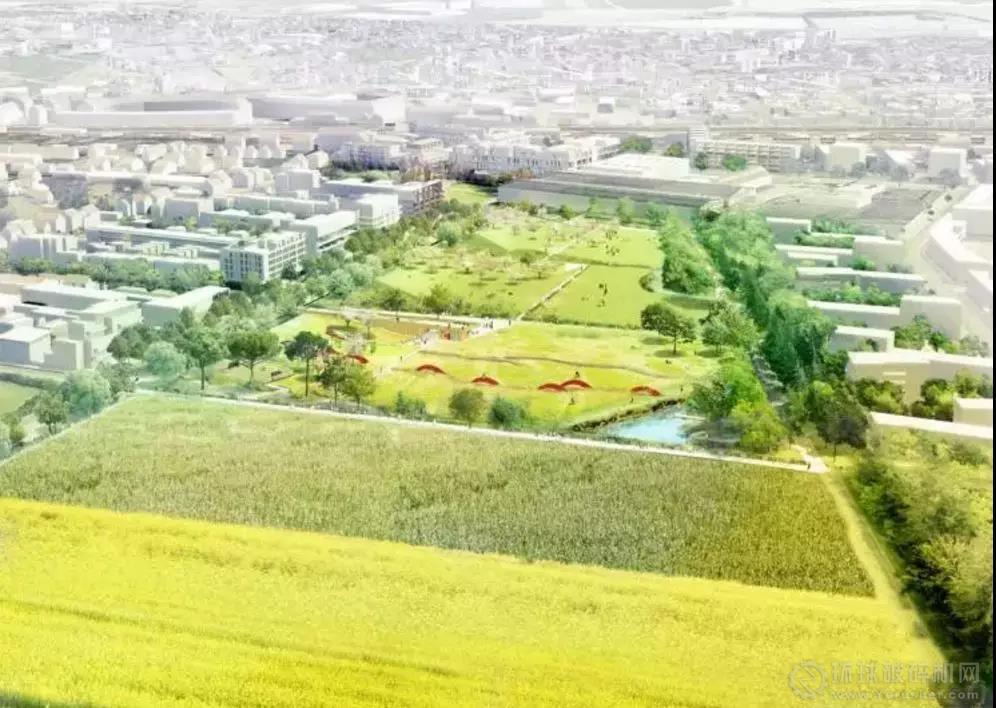 在法國,有一個(gè)建立在砂石廠上的生態(tài)公園。該項(xiàng)目是對一個(gè)公園的改造,場地位于法國Essonne地區(qū),這里是進(jìn)入Orge谷的必經(jīng)區(qū)域,環(huán)境優(yōu)美,綠色的草地綿延不斷,就像是天然的地毯,迎接著四方的來客。這里周邊是一個(gè)小村莊,原本這里有三個(gè)大田場,現(xiàn)在都并入了小鎮(zhèn),從山谷的水平線上往下看,場地的面積依舊很大,有很大的發(fā)展?jié)撃堋TO(shè)計(jì)團(tuán)隊(duì)利用種植模型來形成公園的基本架構(gòu)。從北邊到南邊的山谷翼部有一片果樹林,它位于小山的一側(cè),濃密的叢林沿著蜿蜒的小河不斷伸展。