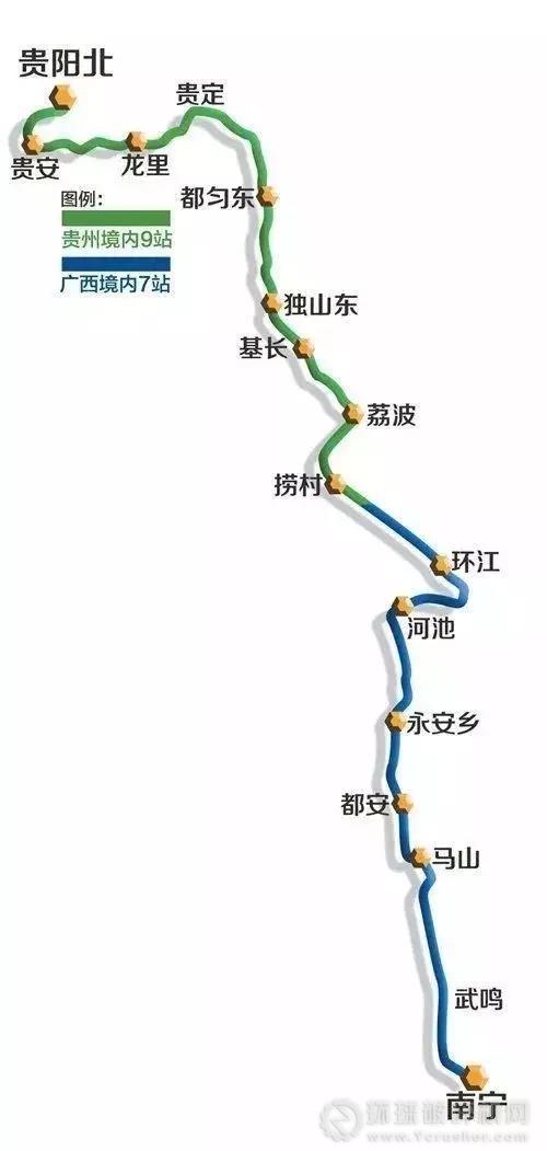 貴州:桐梓東站,婁山關南站,遵義東站,茍江站,息烽站,扎佐東站,貴陽北站,貴安站;龍里北站,貴定縣站,都勻東站,獨山東站,荔波站,撈村站;