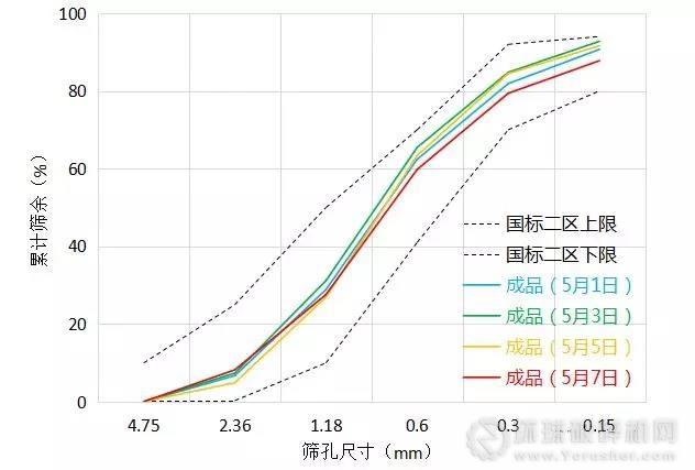 成品砂質(zhì)量:符合《建設用砂》2區(qū)中砂和《高性能混凝土用骨料》I級砂標準
