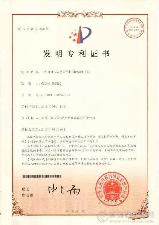 榮獲國家發(fā)明專利:“一種可替代天然砂的機制砂制備方法”