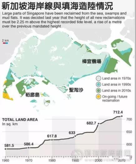 新加坡的國土從1819年的578 km?,到今天的719 km?,總土地面積實現(xiàn)了大約25%的增長,生生增加了四分之一的國土面積,相當于造出了一個蘇州市呢!