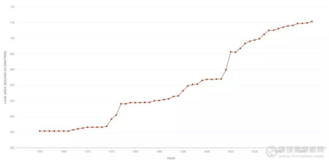 這是一張顯示新加坡自1960年代以來土地面積增加的圖表: