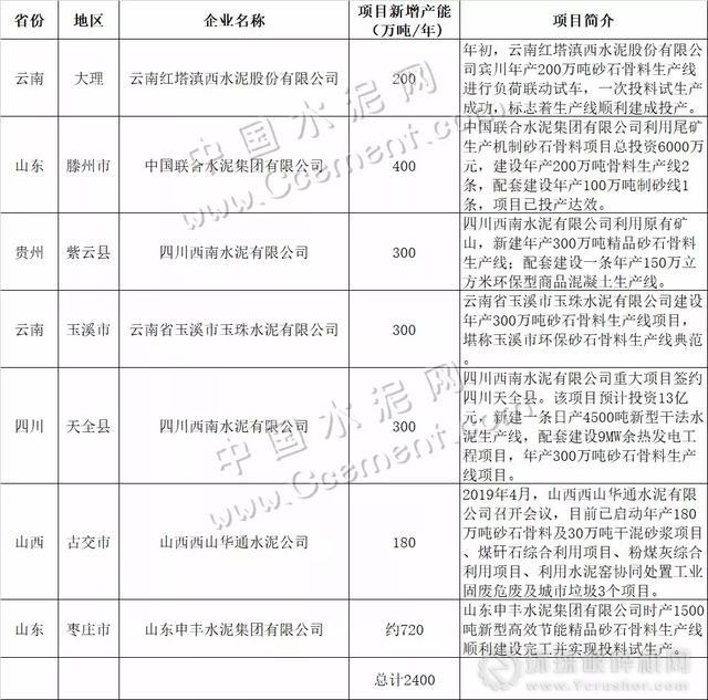 綜上來看,若上述水泥企業(yè)的砂石骨料生產線建設計劃在2019年全面推進,預計將有近10億噸砂石骨料沖擊市場。