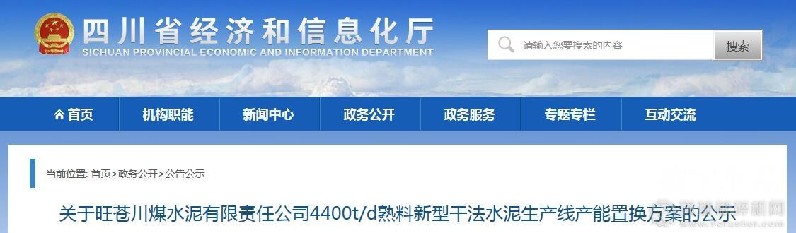 根據(jù)四川省經(jīng)信委關(guān)于旺蒼川煤水泥有限責(zé)任公司4400t/d熟料新型干法水泥生產(chǎn)線產(chǎn)能置換方案的公示顯示,旺蒼川煤水泥有限責(zé)任公司擬在廣元市旺蒼縣盧家壩村建設(shè)一條4400t/d水泥熟料生產(chǎn)線,公示內(nèi)容如下: