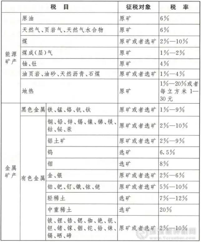 選礦按照1%-5%或者每噸(或者每立方米)0.1-5元稅率征收;