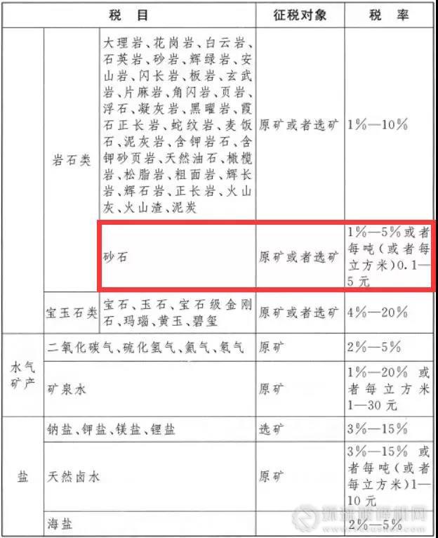 相較于此前發(fā)布的《資源稅法(征求意見稿)》內(nèi)容:對(duì)砂石(天然砂、卵石、機(jī)制砂石)征收1%-5%或者1元-10元/立方米資源稅——《資源稅法》正式發(fā)布文件: