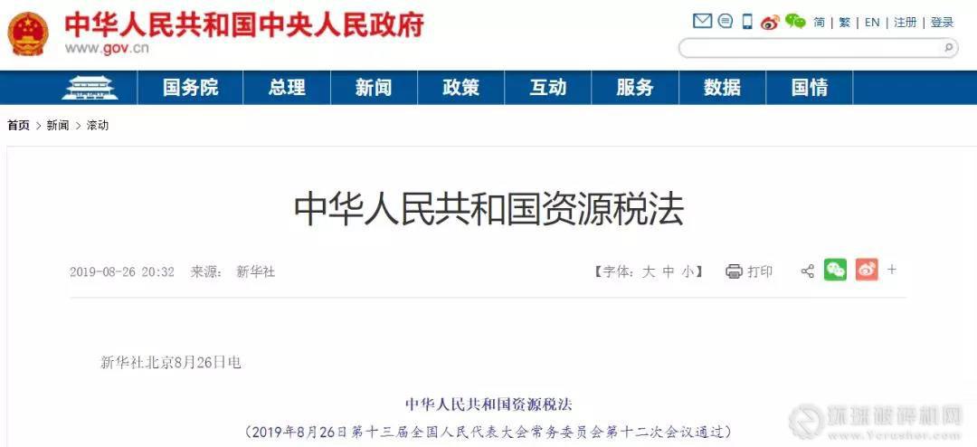 8月26日,新華社發(fā)布《中華人民共和國(guó)資源稅法》(以下簡(jiǎn)稱《資源稅法》)全文,《資源稅法》規(guī)定:
