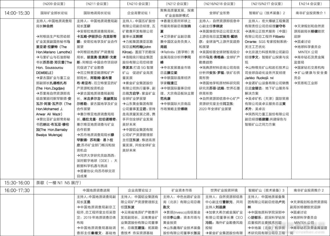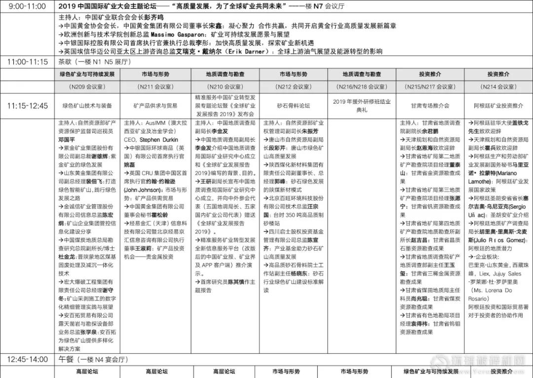 大會主題論壇重點邀請來自國際組織、金融機構、礦業企業等代表進行主題發言;高層論壇聚集礦業熱點,研判國內外礦業發展動態,擬舉辦國際礦業部長論壇、國際地調局長論壇和企業高管論壇,發言嘉賓包括國外礦業部長、地質調查局長、中外企業家等,著重以探討、解讀和宣傳政策法規為主;專題論壇注重企業和市場需求,主要為礦業法規與政策、市場與形勢、地質調查與勘查、綠色礦業與可持續發展、投資推介等板塊,將有來自國內外礦業知名專家學者就相關議題展開研討。