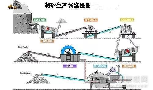 在原料投入后,首先應(yīng)該進(jìn)行粗破設(shè)備的投入,也就是通過具體的粗破設(shè)備進(jìn)行初始的粗破過程,然后通過投入到中間料堆進(jìn)行相關(guān)儲存,在儲存過程之中進(jìn)行有效的輸送,將材料輸送到篩分設(shè)備,進(jìn)行篩分工作,也就是進(jìn)行預(yù)篩分工作。然后進(jìn)行中細(xì)破工序,將其投入到篩洗車間進(jìn)行有效篩洗工作。在具體的工作之中,對于原料的含土量進(jìn)行分析,含土量不同的原料應(yīng)該進(jìn)行不同的處理辦法,篩洗工作完成后,進(jìn)行有效儲存。