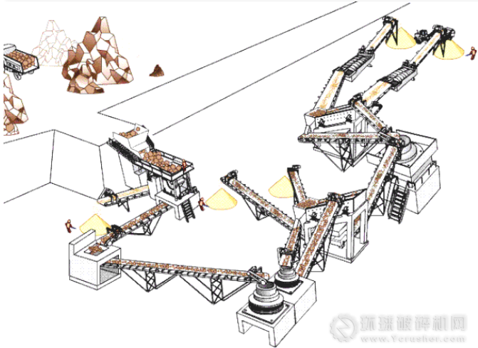 在生產(chǎn)線的工藝選擇過程中,具體的粗破設(shè)備主要應(yīng)該選擇旋回式破碎機(jī)、