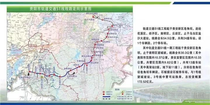 同天,貴陽市軌道交通S1線一期工程項(xiàng)目也開工建設(shè),線路全長30.32公里,設(shè)站13座,總投資172.52億元。