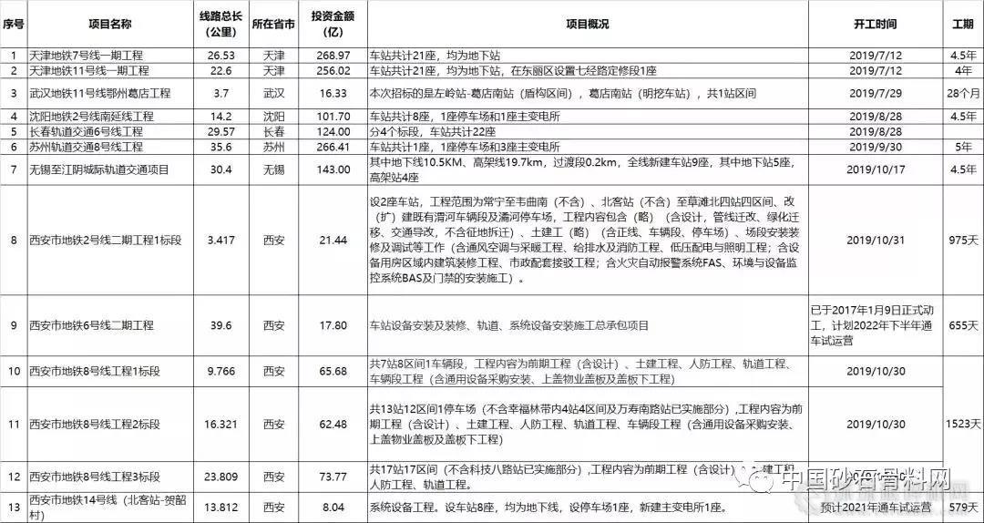 另外,7-10月,有11條共計(jì)投資超1425億的重大地鐵項(xiàng)目接連開建情況如下: