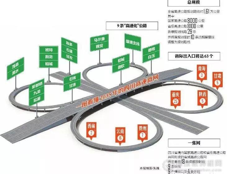 根據(jù)《規(guī)劃》目標,到2035年,四川將形成“一干多環(huán)放射、多支高效聯(lián)網(wǎng)、藏區(qū)便捷連通”的省域高速公路網(wǎng),95%的縣級節(jié)點實現(xiàn)規(guī)劃高速公路連接,川西北藏區(qū)10個縣城將實現(xiàn)“高速化”公路覆蓋。