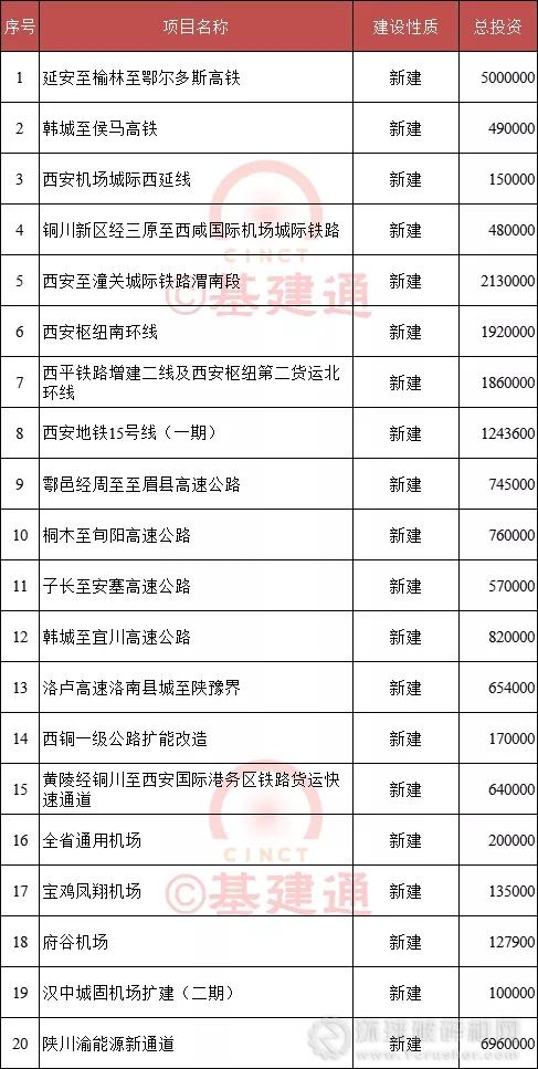 3月10日,陜西省政府公開(kāi)陜西省2020年省級(jí)重點(diǎn)項(xiàng)目計(jì)劃。計(jì)劃包含項(xiàng)目600個(gè),項(xiàng)目總投資約3.4萬(wàn)億。其中,續(xù)建項(xiàng)目312個(gè),總投資約17011億元;新開(kāi)工項(xiàng)目188個(gè),總投資約8679億元;前期項(xiàng)目100個(gè),總投資約8389億元。