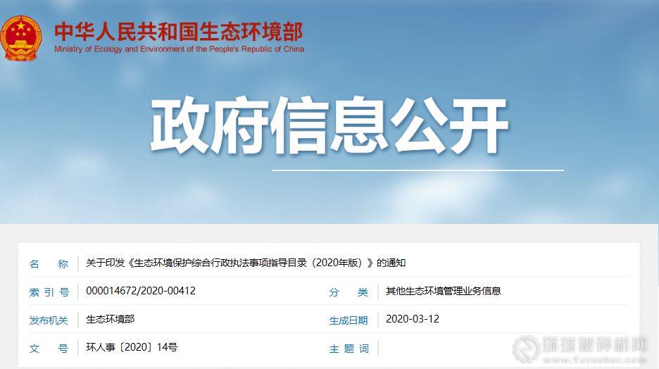 近日,生態(tài)環(huán)境部發(fā)布了關(guān)于印發(fā)《生態(tài)環(huán)境保護(hù)綜合行政執(zhí)法事項(xiàng)指導(dǎo)目錄(2020年版)》(以下簡稱“《指導(dǎo)目錄》”)的通知,稱根據(jù)深化黨和國家機(jī)構(gòu)改革有關(guān)安排部署,為貫徹落實(shí)《國務(wù)院辦公廳關(guān)于生態(tài)環(huán)境保護(hù)綜合行政執(zhí)法有關(guān)事項(xiàng)的通知》(國辦函〔2020〕18號)要求,扎實(shí)推進(jìn)生態(tài)環(huán)境保護(hù)綜合行政執(zhí)法改革,現(xiàn)印發(fā)《生態(tài)環(huán)境保護(hù)綜合行政執(zhí)法事項(xiàng)指導(dǎo)目錄(2020年版)》及說明。