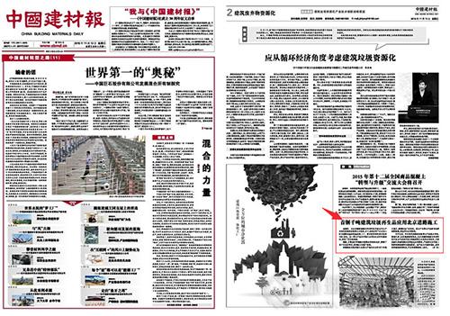 二、生產(chǎn)的磚瓦類建筑垃圾再生無機料成功應(yīng)用于北京某小區(qū)的道路底基層和基層施工中,2015年11月12日的《中國建材報》在第2版“建筑廢棄物資源化”刊登了標題為“首鋼千噸建筑垃圾再生品應(yīng)用北京道路施工”的文章。