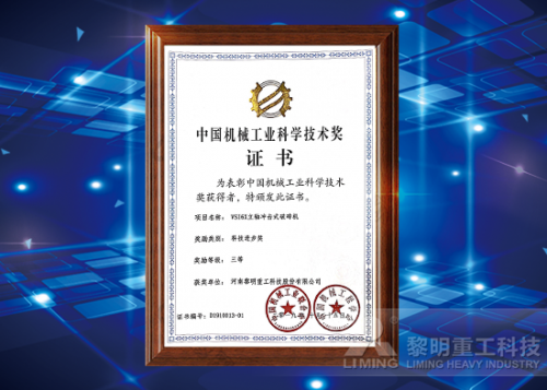 由河南黎明重工科技股份有限公司主導(dǎo),聯(lián)合鄭州機(jī)械研究所有限公司、哈爾濱工業(yè)大學(xué)以及安徽工業(yè)大學(xué)共同申報(bào)的VSI6X立軸沖擊式破碎機(jī)項(xiàng)目喜獲三等獎(jiǎng)。