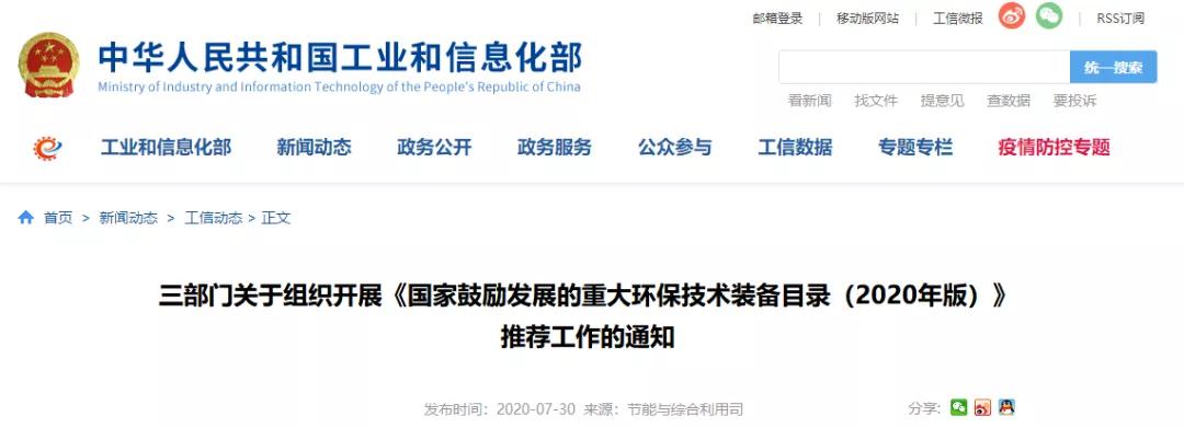 為加快先進環保裝備研發和應用推廣,提升環保裝備制造業整體水平和供給質量,為生態文明建設和經濟高質量發展提供有力支撐,工業和信息化部辦公廳 科技部辦公廳 生態環境部辦公廳聯合發布關于組織開展《國家鼓勵發展的重大環保技術裝備目錄(2020年版)》推薦工作的通知(以下簡稱《通知》)。