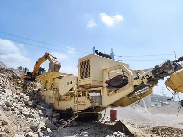 然而由于花崗巖的硬度比較高,在花崗巖礦山的綜合利用階段,架設(shè)固定式破碎處理系統(tǒng)無論從場(chǎng)地和基建成本等多方面因素考慮都顯得優(yōu)勢(shì)較小,而廣東磊蒙智能裝備集團(tuán)有限公司以主機(jī)C110顎破搭配HPY圓錐機(jī)的