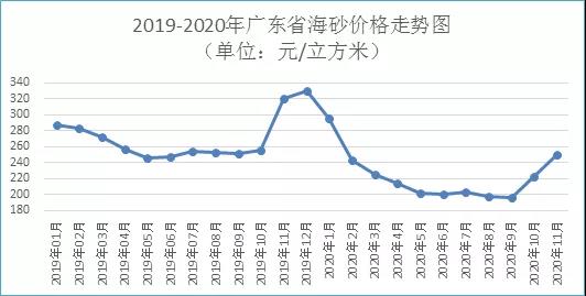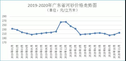 11月,廣東省河砂215元/方,海砂250元/方,碎石173元/方