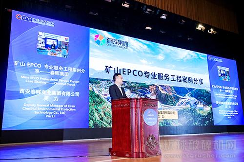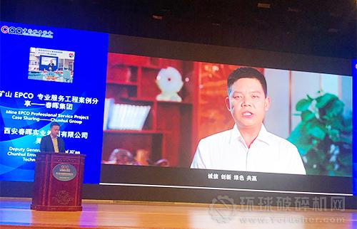 會(huì)上,西安春暉環(huán)保科技有限公司副總經(jīng)理吳力作題為《礦山 EPCO 專業(yè)服務(wù)工程案例分享——春暉集團(tuán)》的主題報(bào)告。報(bào)告介紹了:西安春暉實(shí)業(yè)集團(tuán)有限公司簡介、礦山 EPCO 總包實(shí)力分享以及工程案例分享。春暉集團(tuán)公司的宣傳視頻博得大會(huì)上所有人的眼球,視頻介紹了春暉實(shí)業(yè)集團(tuán)涉及到的業(yè)務(wù)、在綠色礦山方面的技術(shù)探索、四大產(chǎn)品設(shè)備-