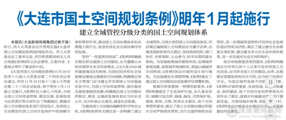 最后,《大連日?qǐng)?bào)》全文發(fā)布了《大連市國(guó)土空間規(guī)劃條例》施行版。