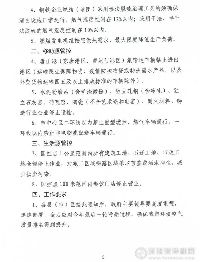 城區(qū)禁行“國Ⅲ”及以下標準機動車;施工工地、工業(yè)企業(yè)廠區(qū)和工業(yè)園區(qū)內(nèi)停止使用國二及以下非道路移動機械(清潔能源和緊急檢修作業(yè)機械除外);礦山(含煤礦)、洗煤廠、港口、物流(除民生保障類)等涉及大宗原料和產(chǎn)品運輸(日常進出量超過10輛次)的單位停止使用國四及以下重型載貨車輛(含燃氣車輛)進行運輸(特種車輛、危化品車輛除外)。