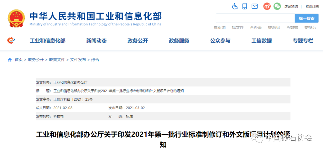 近日,工業(yè)和信息化部下達(dá)《2021年第一批行業(yè)標(biāo)準(zhǔn)制修訂項(xiàng)目計(jì)劃》(工信廳科函【2021】25號(hào))的通知。2021年第一批共安排行業(yè)標(biāo)準(zhǔn)制修訂項(xiàng)目計(jì)劃521項(xiàng)。其中制定409項(xiàng),修訂112項(xiàng);專項(xiàng)標(biāo)準(zhǔn)285項(xiàng),其他標(biāo)準(zhǔn)236項(xiàng);重點(diǎn)標(biāo)準(zhǔn)188項(xiàng),基礎(chǔ)公益類標(biāo)準(zhǔn)120項(xiàng),一般標(biāo)準(zhǔn)213項(xiàng);工程建設(shè)標(biāo)準(zhǔn)12項(xiàng),節(jié)能與綜合利用標(biāo)準(zhǔn)90項(xiàng),產(chǎn)品標(biāo)準(zhǔn)310項(xiàng),基礎(chǔ)標(biāo)準(zhǔn)11項(xiàng),方法標(biāo)準(zhǔn)92項(xiàng),管理標(biāo)準(zhǔn)6項(xiàng)。行業(yè)標(biāo)準(zhǔn)外文版項(xiàng)目計(jì)劃113項(xiàng),其中翻譯現(xiàn)有標(biāo)準(zhǔn)項(xiàng)目89項(xiàng)、同步制定24項(xiàng)。