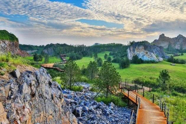 東方園林計劃將九頂山森林公園打造成為“活力山林·峽谷勝境”,在改善生態基礎條件上,形成富有生命活力的林地空間,通過對礦坑的改造及崖壁山巖的梳理,變廢為寶,營造突顯九頂山獨特風貌的景觀特色。