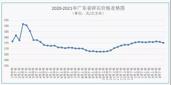 3月下旬全省碎石平均購(gòu)進(jìn)價(jià)為每立方米175元,環(huán)比微降0.49%。其中,珠三角、粵西和粵北地區(qū)碎石分別為每立方米192元、136元和142元,環(huán)比分別下降0.41%、0.3%和1.03%;粵東地區(qū)碎石為每立方米199元,環(huán)比持平。3月下旬機(jī)制砂平均購(gòu)進(jìn)價(jià)為每立方米158元,環(huán)比微降0.43%。
