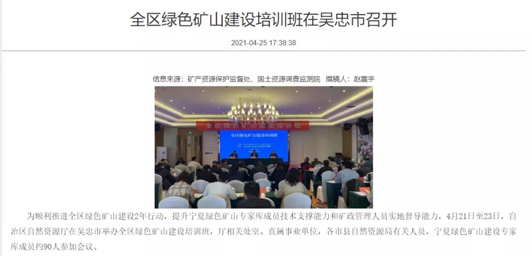 4月21-23日,寧夏回族自治區自然資源廳組織了全區綠色礦山建設培訓班,對自治區廳內相關處室、直屬事業單位、各市縣自然資源局有關人員、綠色礦山建設專家庫成員等參加培訓會議。
