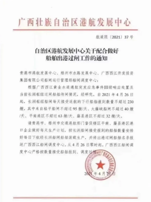 近日,西江再度傳來限流的通知。日前,廣西壯族自治區港航發展中心發布《關于配合做好船舶出港過閘工作的通知》,文件稱根據廣西西江黃金水道通航突發應急事件Ⅲ級響應處置及當前長洲樞紐過閘船舶待閘情況,經研究,自2021年4月26日起,長洲樞紐船閘每天接受適航的下行船舶報到數量不超過230艘、其中來自桂平船閘不超過95/天、大藤峽船閘不超過40艘/天、平南港區不超過63艘/天、藤縣港區不超過32艘/天。