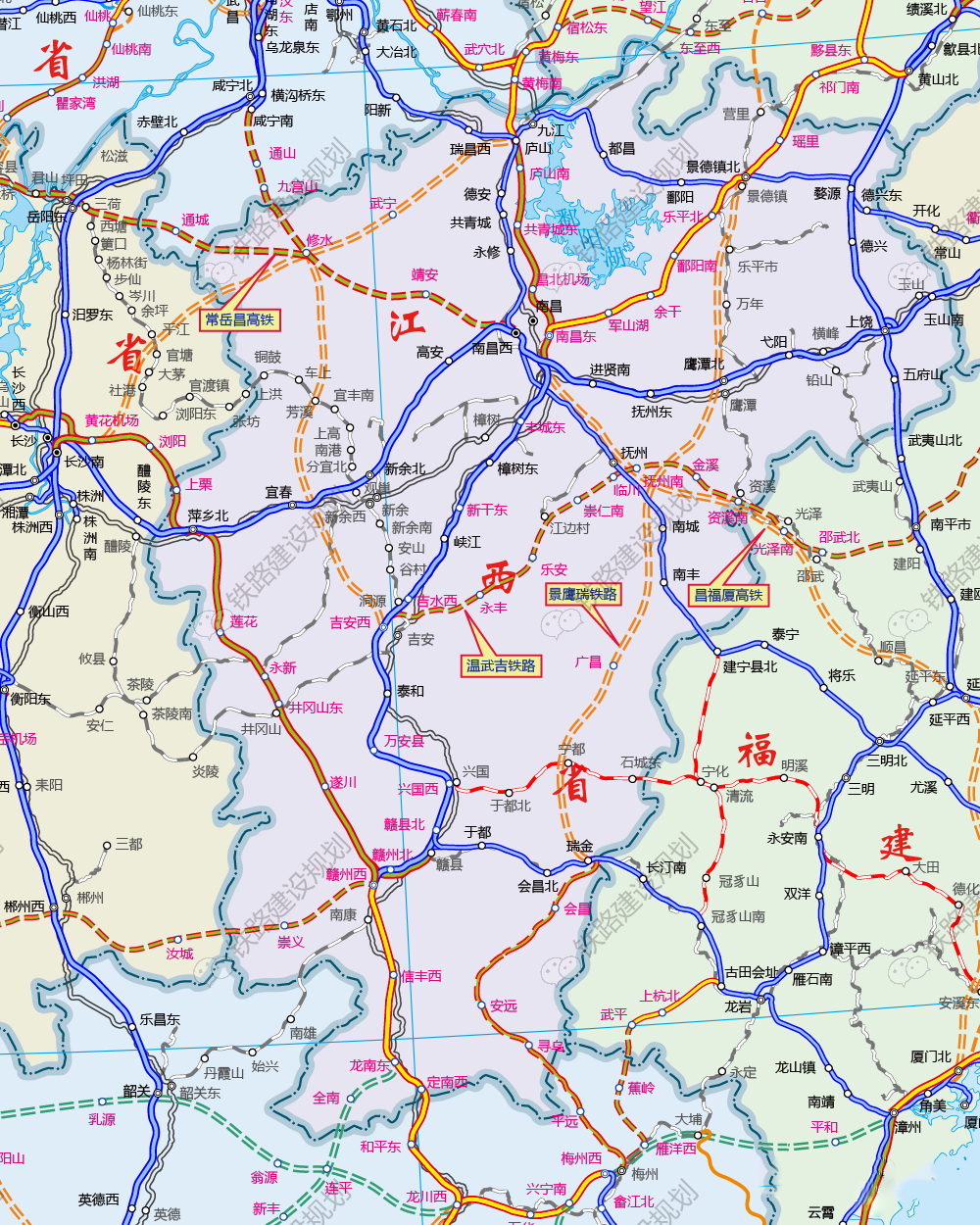 江西省重點規劃鐵路示意圖▼