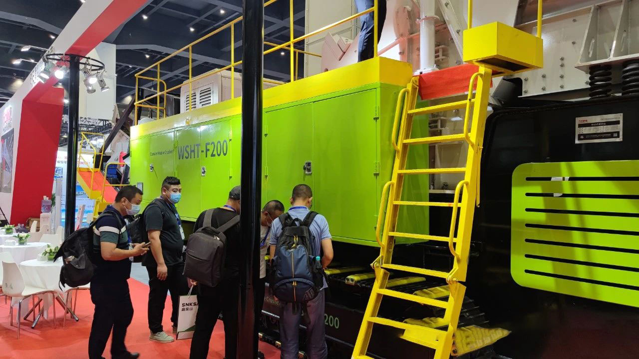 移動破碎站、礦山破碎輸送裝備及配套設備、粉塵廢氣處理等綜合系統的設計、制造、安裝。公司以升級改造骨料生產項目產能,改善作業環境,助力綠色礦山建設為己任。此次展會上萬仕衡通眾多礦山設備倍受歡迎,展位人頭攢動,設備引發圍觀,各位參展人員紛紛拍照留念。移動式破碎站、圓錐式破碎機可謂是高大帥氣、科技感十足的產品,在展會上吸睛十足。