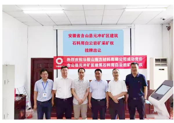 6月23日,馬鞍山南方材料有限公司在安徽含山縣公共資源交易中心成功競得含山縣元沖礦區(qū)儲量2.8億噸建筑石料用白云巖礦采礦權(quán)。
