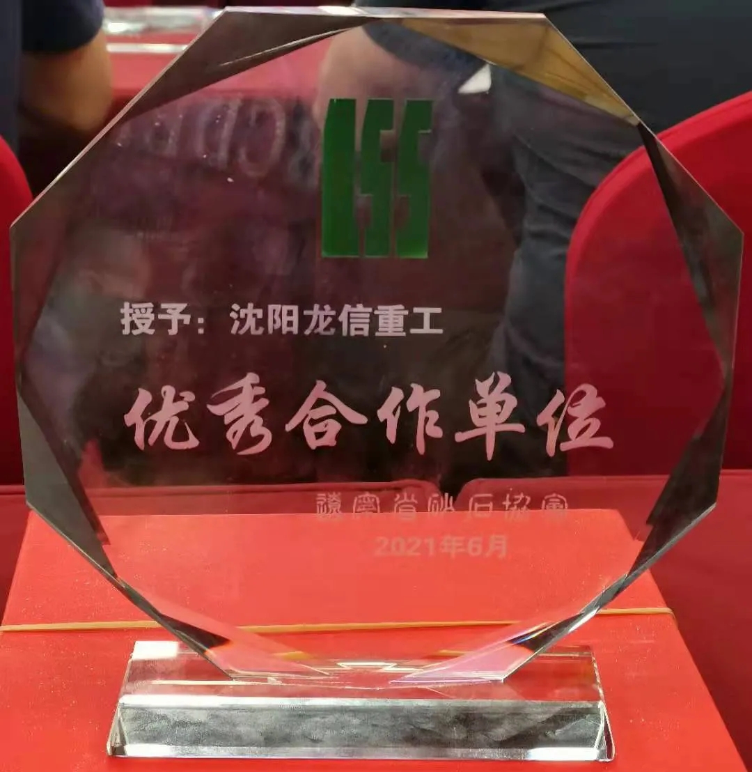 2021年6月26日,由遼寧省砂石協會主辦的“遼寧省砂石協會第二屆理事會代表大會第一次會議”在沈陽成功舉辦。會上,沈陽龍信重工榮獲“優秀合作單位”稱號,總經理韓嘯當選副會長。