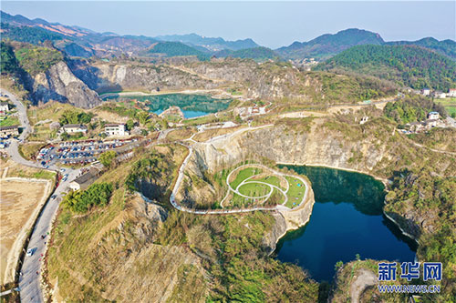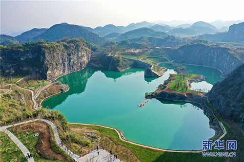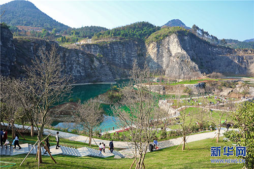 華麗變身后的礦山公園絕壁環繞、碧水幽潭,景致十分迷人。新華網發(任天駒 攝)