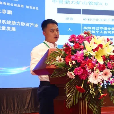 河南中譽鼎力智能裝備有限公司銷售副總代志鵬作題為《創新裝備及管理系統助力砂石產業高質量發展》的報告;