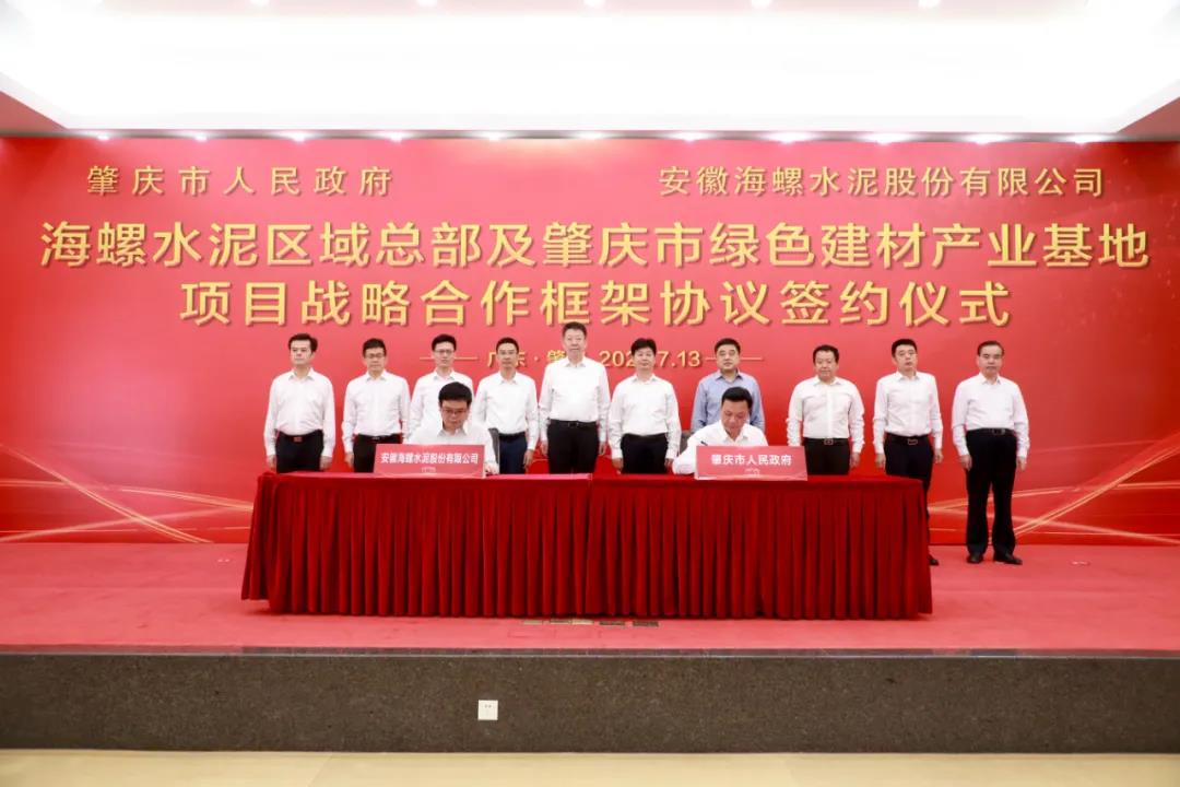 7月13日,肇慶市人民政府與安徽海螺水泥股份有限公司簽訂海螺水泥區(qū)域總部及肇慶市綠色建材產(chǎn)業(yè)基地項(xiàng)目戰(zhàn)略合作框架協(xié)議,雙方將在綠色建材產(chǎn)業(yè)等領(lǐng)域開展全面深化合作,共同打造國(guó)內(nèi)一流的新型建材領(lǐng)域科技創(chuàng)新和產(chǎn)業(yè)發(fā)展平臺(tái)。