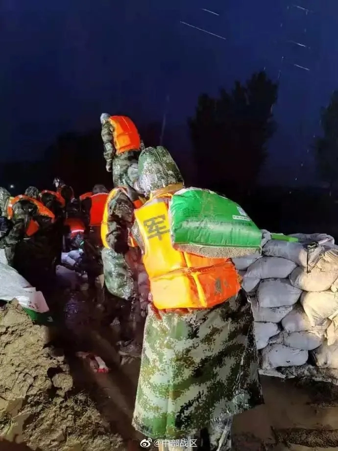 7月21日凌晨,空降兵某旅接到中部戰區命令后,出動650人,車輛38臺,在賈魯河祥符區段的兩處決口,筑起長1.5公里,高1.2米的沙(砂)袋墻。