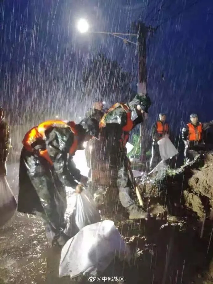武警子弟兵扛起沙袋救援